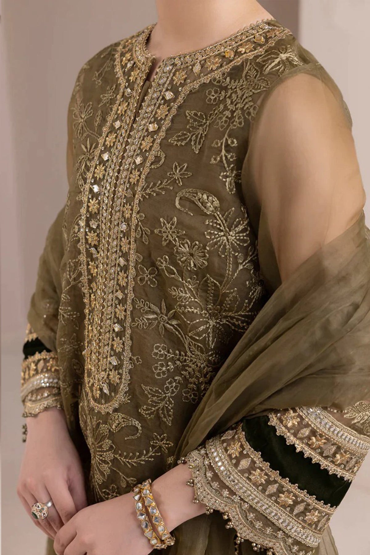 QN728-BAROQUE-Embroidered 3pc organza dress with organza duppata